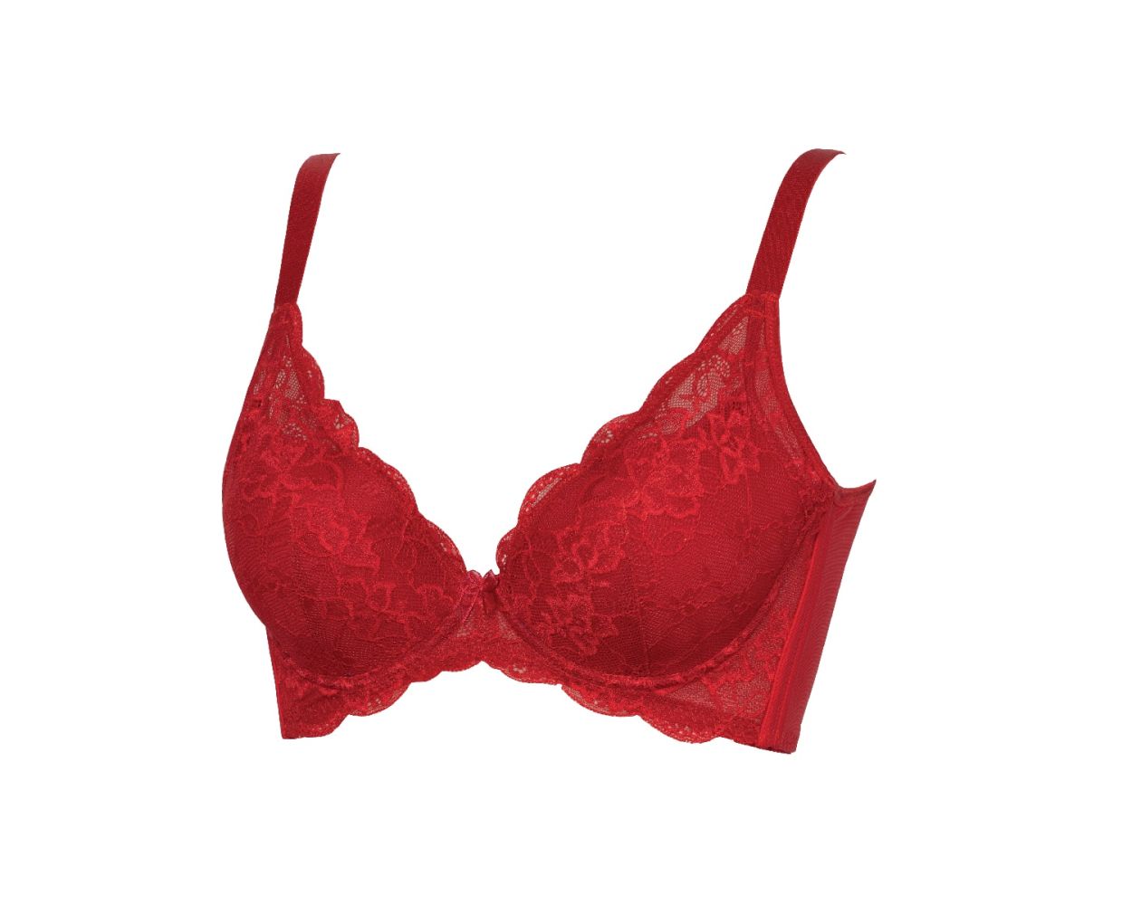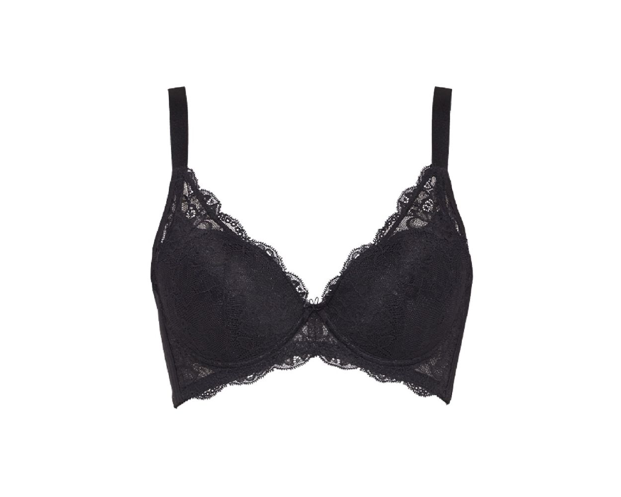 更貼服: 罩杯上沿使用彈性蕾絲,使不同胸型女性穿著亦有貼服包覆的效果。